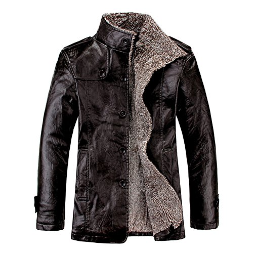 Best Seller! URBANFIND Men's Slim Wear Thick Fleece PU Leather Jacket UK L Black Review